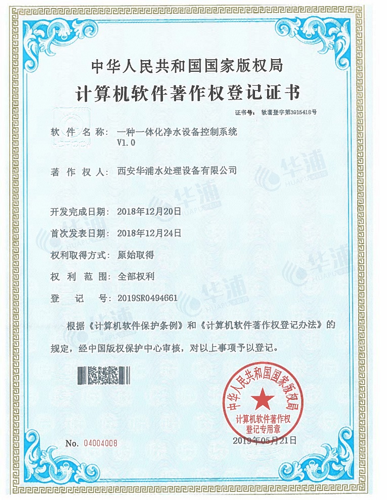 軟著丨一種一體化凈水設備控制系統